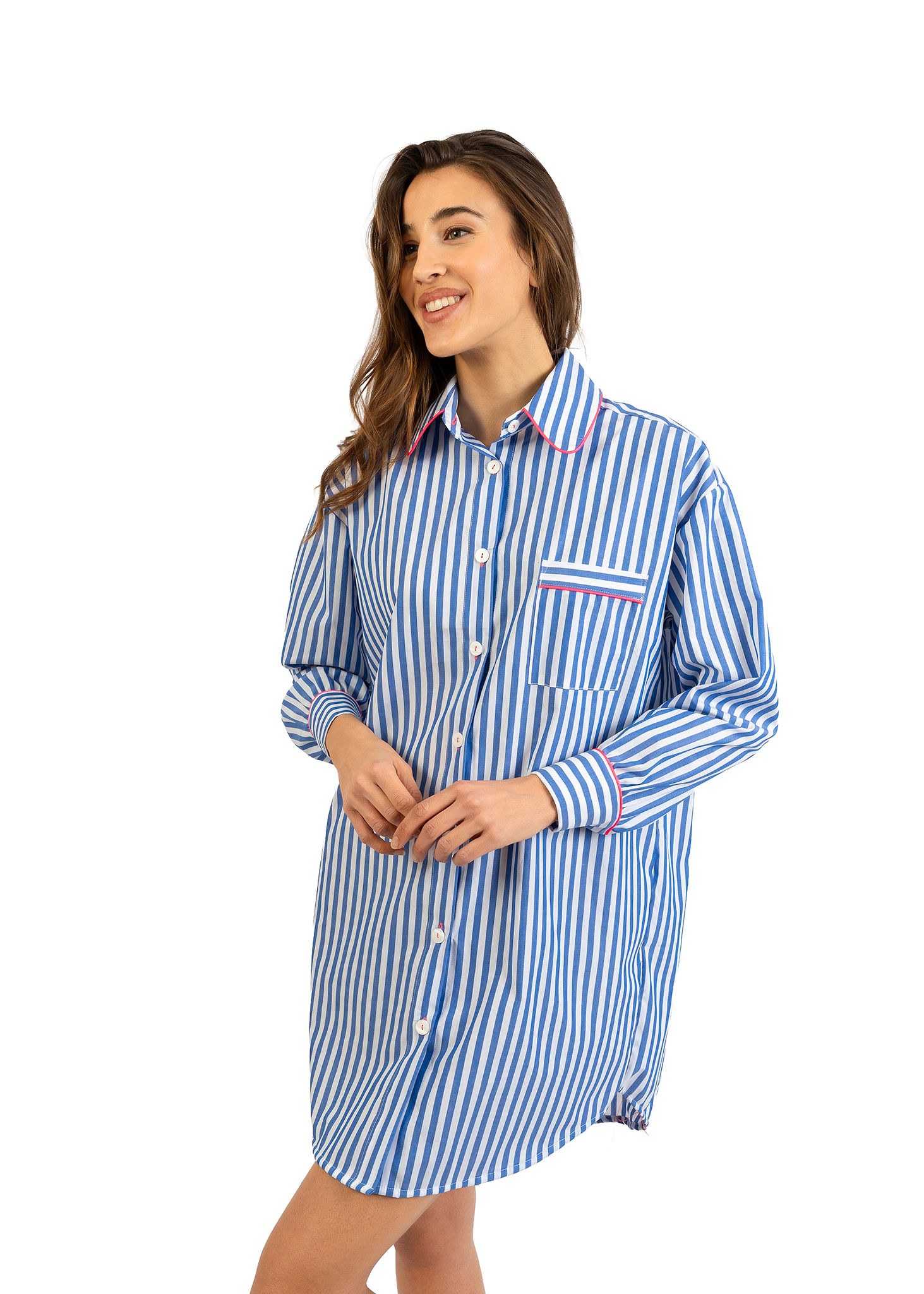 Camicione donna Nabali in cotone a righe blu e bianco, leggero e traspirante con vestibilità comoda Made in Italy