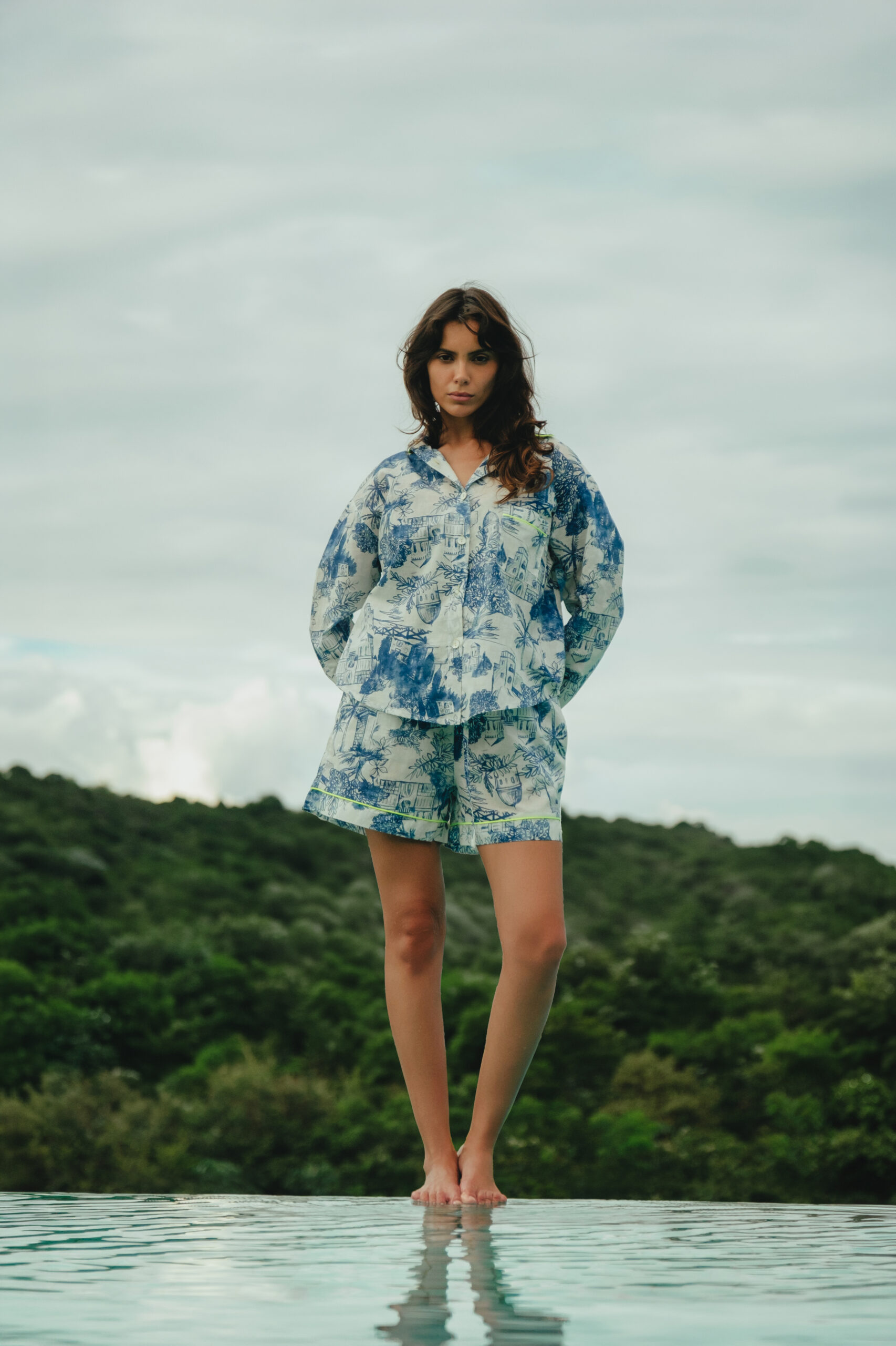 CAPRI – Camicia over e pantaloncino in fantasia blu