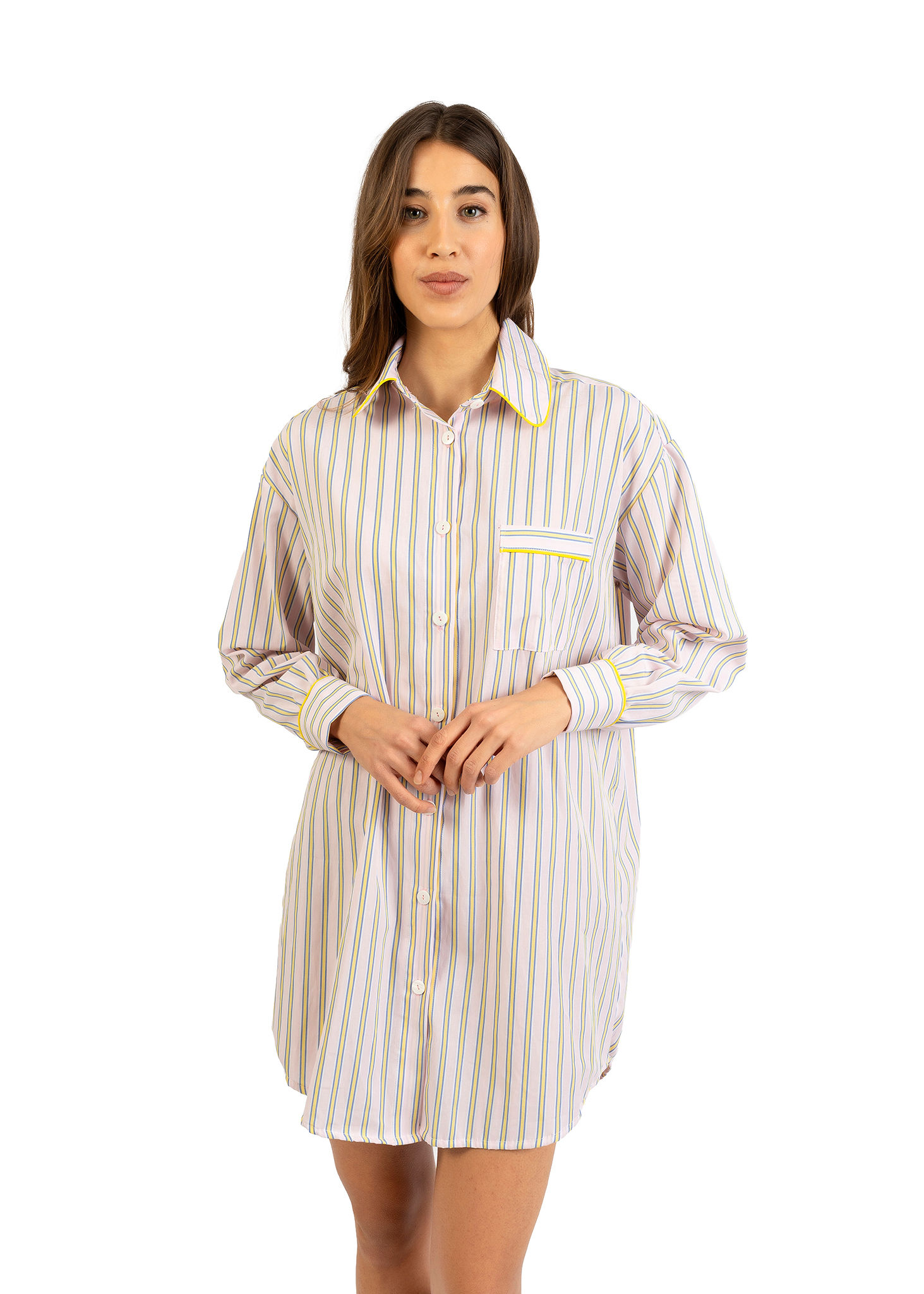 Camicione donna Nabali in cotone a righe gialle e rosa, leggero, morbido e confortevole Made in Italy