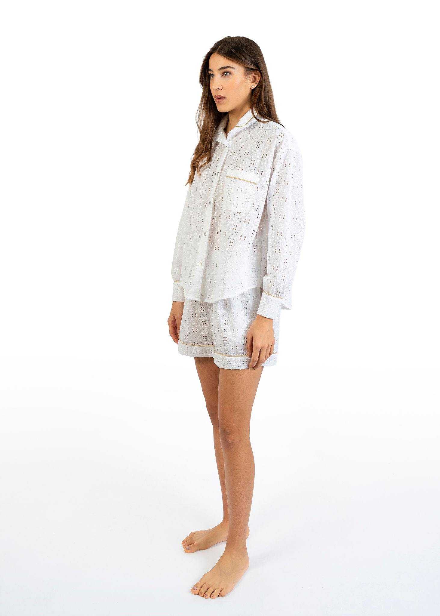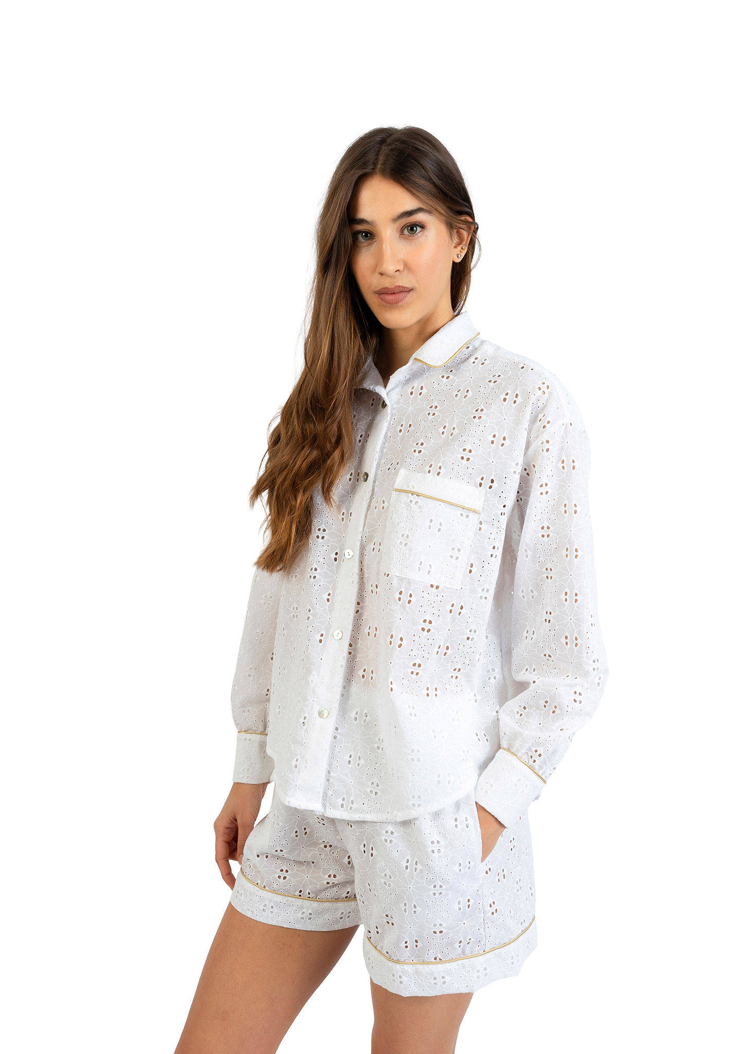 PORTOFINO – Camicia over e pantaloncino in sangallo bianco
