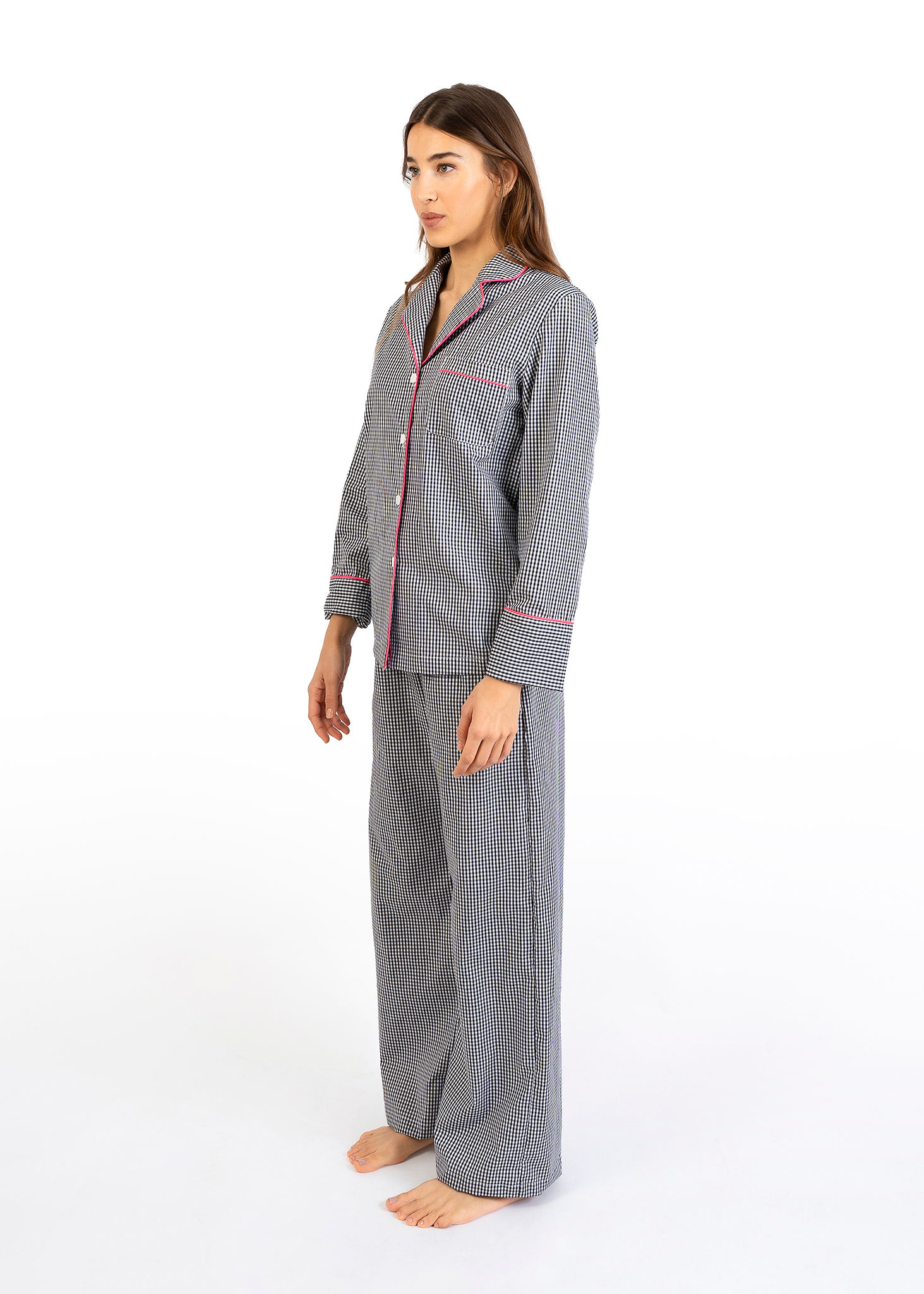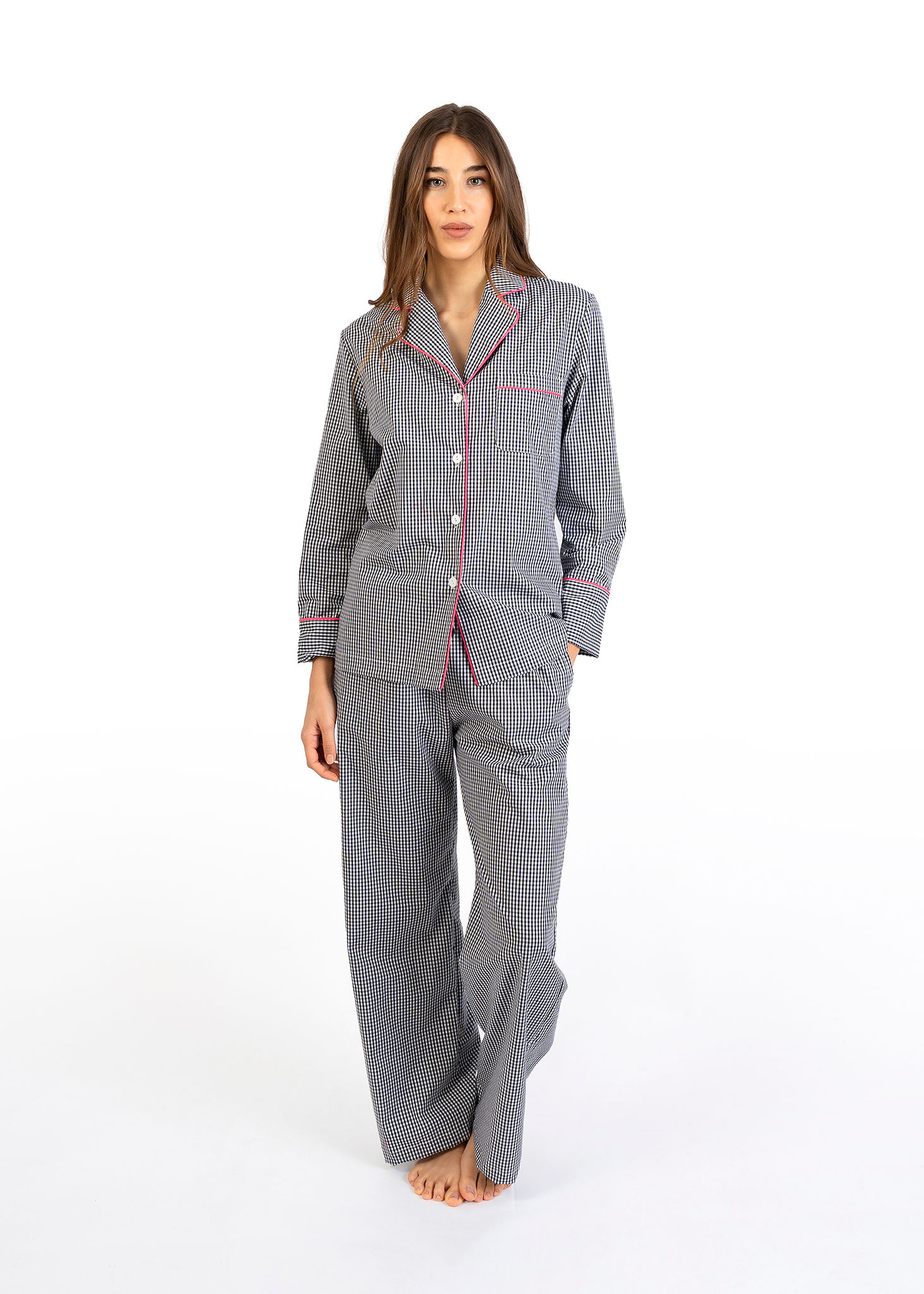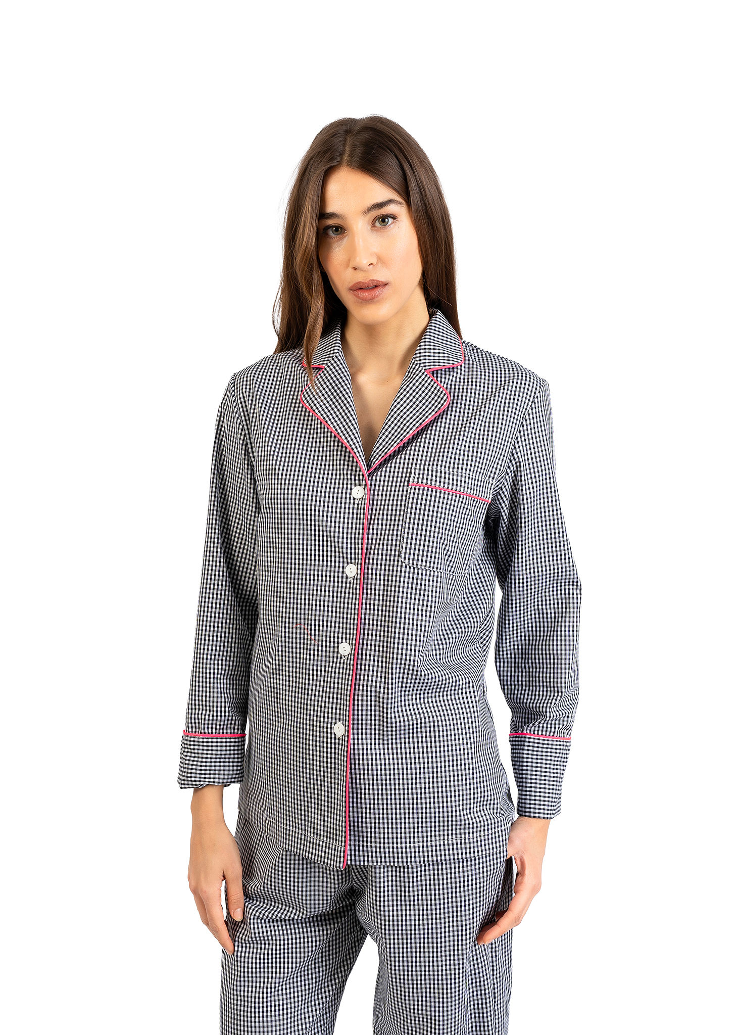Il fascino del classico che non stanca mai. Il pigiama lungo a quadretti nero della Linea Nabali reinterpreta un grande intramontabile con uno stile moderno e curato nei dettagli.